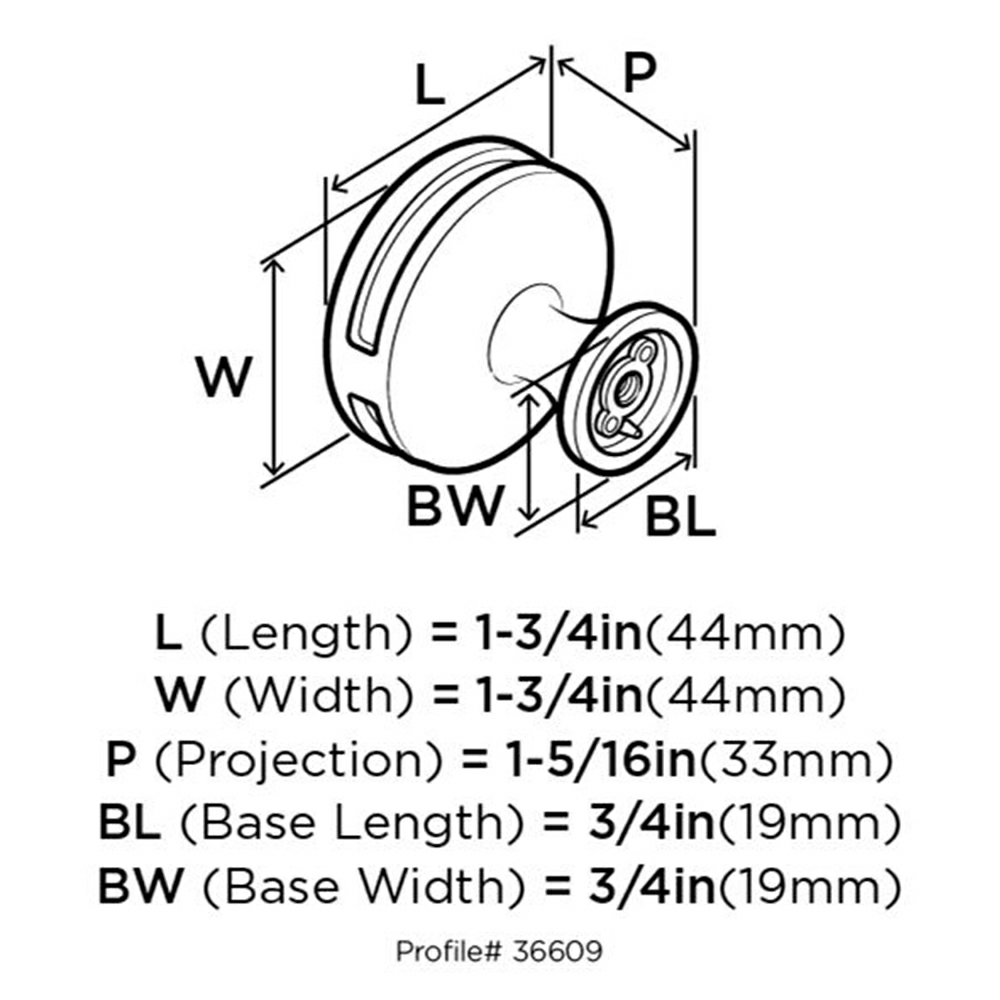 The Amerock Oberon 1-3/4in(44mm) Diameter Knob is finished in Golden Champagne/Frosted. Oberon's clean, simple shape adds elegant intrigue to any space. Choose between a solid or frosted knob to personalize your look.