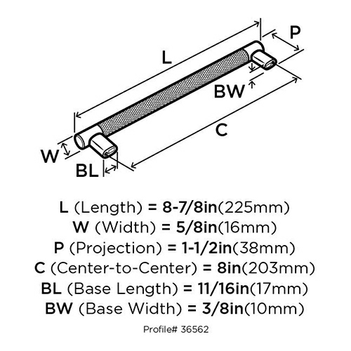The Amerock Esquire 8 in (203 mm) center-to-center pull is finished in Polished Nickel/Stainless Steel. Esquire's sophisticated and modern industrial composition pairs an upscale crosshatch texture with smooth complementary metallic ends for cutting-edge design in any setting.
