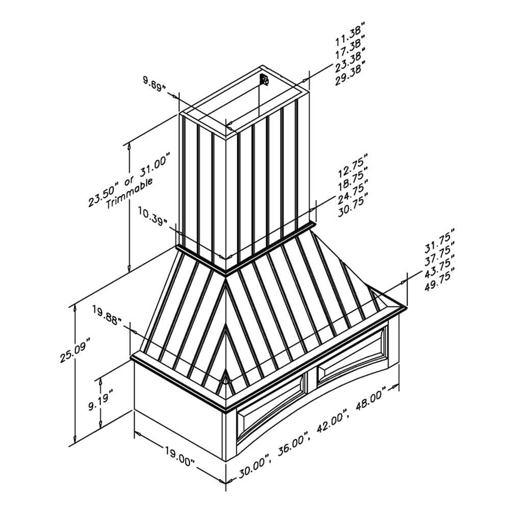 - Designed for easy installation, featuring a removable matching trimmable chimney