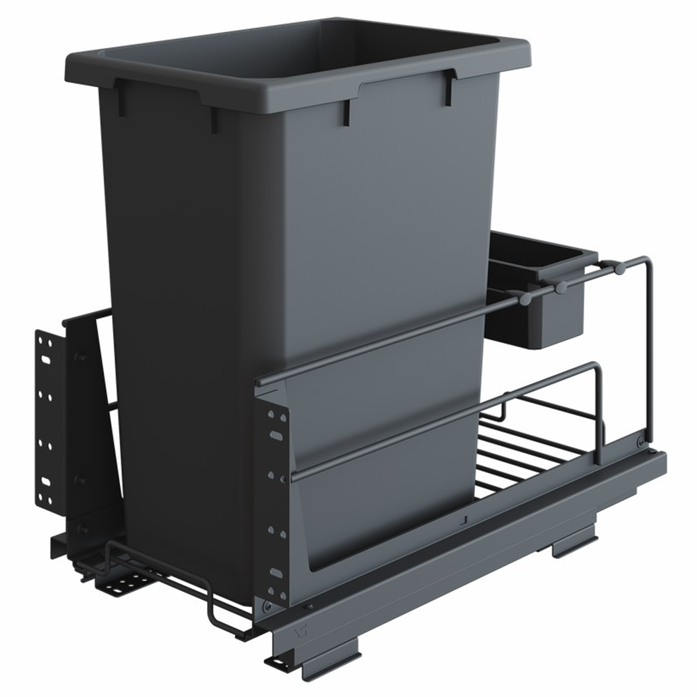 Bottom Mount Saphir Single Bin Carriage for 15" Cabinet Opening, Carbon Steel Gray