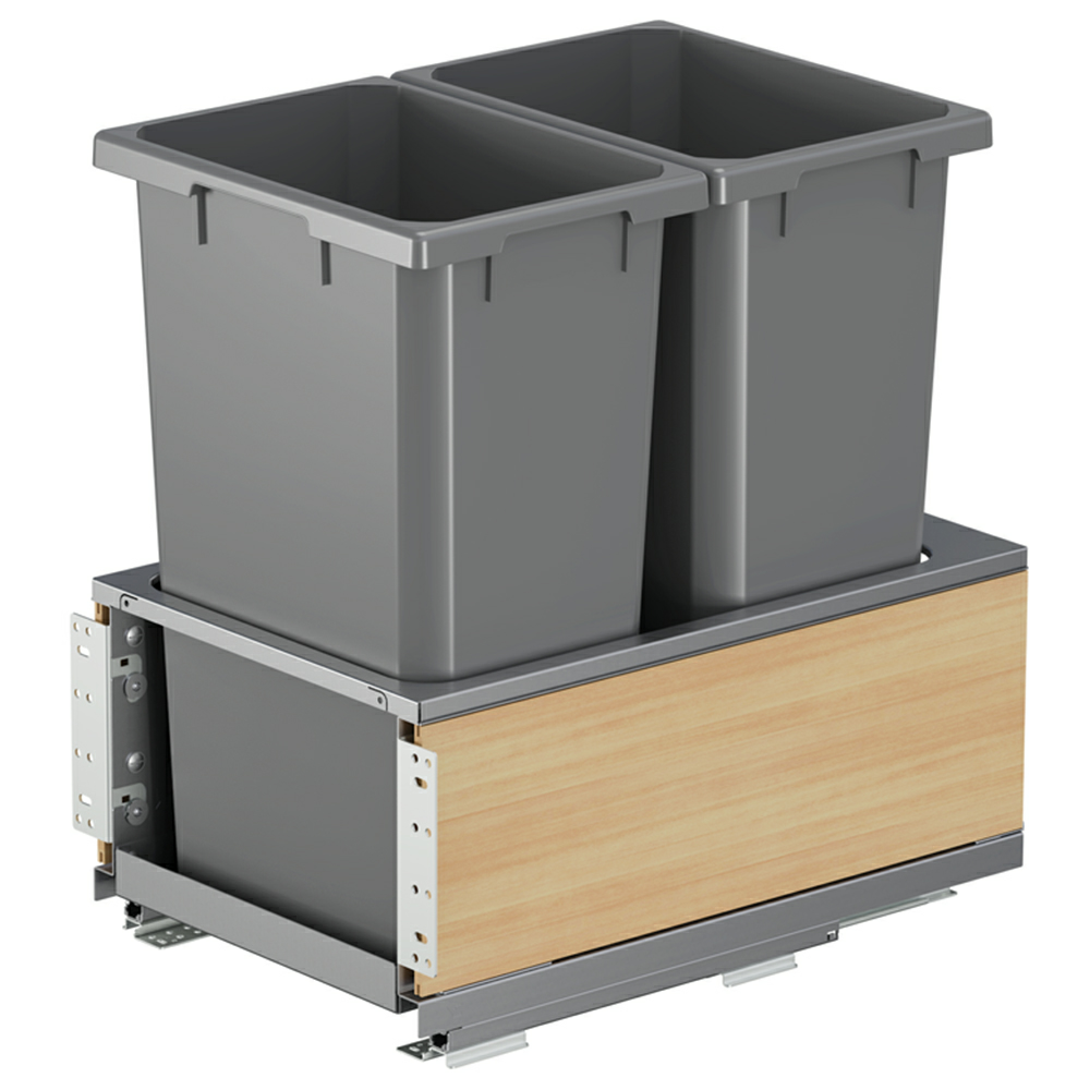 Double 50 QT Bottom-Mount Planero Waste Container Pullout with Soft-Closing and Maple Side Panel, Gray