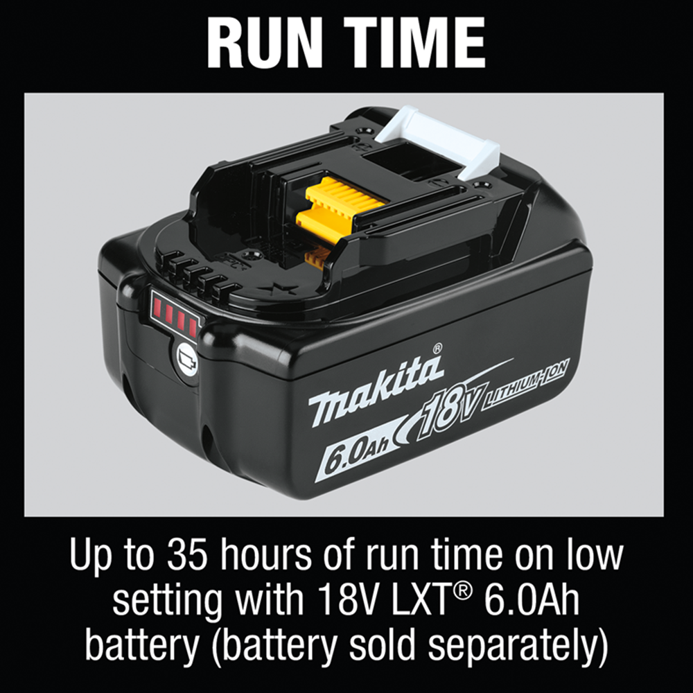 - Up to 35 hours of run time on low setting with 18V LXT 6.0Ah battery (battery sold separately)