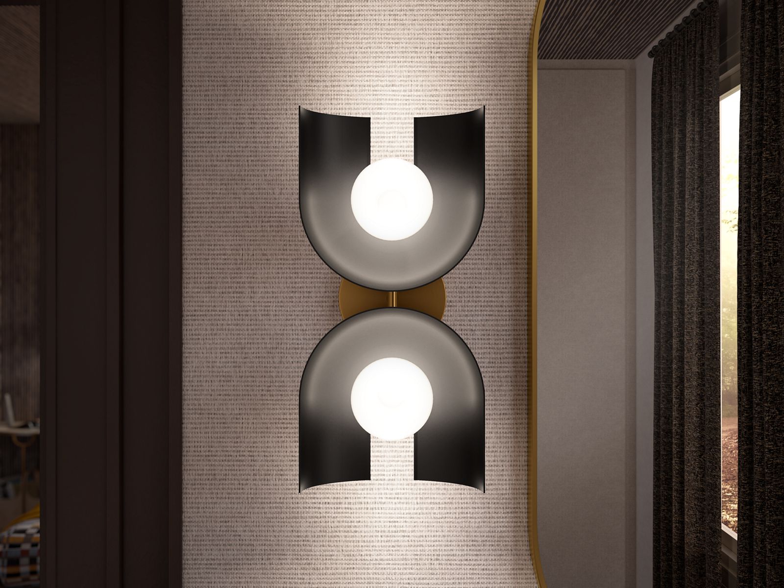- Contoured metal shade uniquely surrounds a single bulb