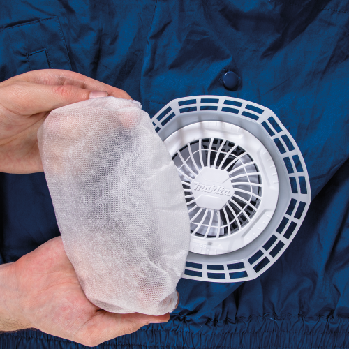 18V LXT Cordless Fan Jackets have a power source that accepts 18V LXT batteries (jacket and batteries sold separately) and powers recessed fan units for air circulation inside the jacket for relief in hot conditions. Get the right accessories for your Makita Fan Jacket with the Fan Jacket Filter, which is engineered to capture free-flowing dust and debris. The filter is made with lightweight material to minimize airflow blockage and has an elastic collar to keep the filter in place. The Fan Jacket Filter is for use with Makita Cordless Fan Jackets models DFJ304 and DFJ405 (jackets sold separately).