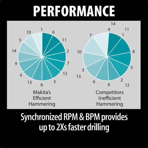 - Efficiency: Sequential impact timing delivers up to 50% faster drilling