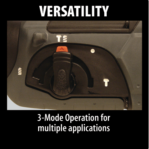 - 3-mode operation for in.Rotation Only in., in.Hammering with Rotation in. or in.Hammering Only in. for multiple applications