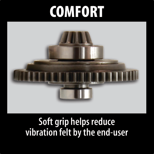 - Torque limiting clutch engineered to prevent gear damage by automatically disengaging gears if the bit binds