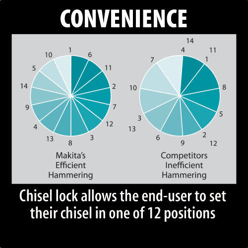 - 2-mode operation for in.Hammering Only in. or in.Hammering with Rotation in.