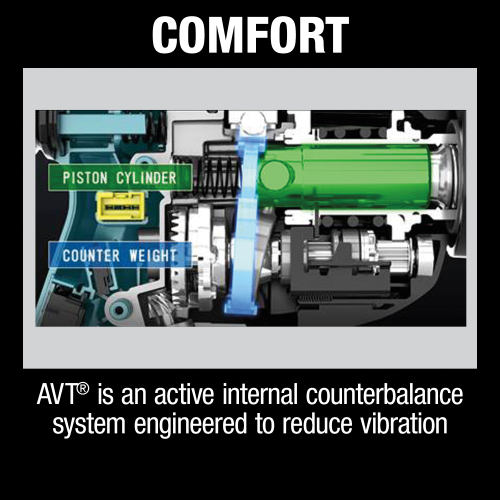 - Anti-Vibration Technology (AVT) is an active internal counterbalance system which is engineered to reduce vibration for increased Comfort