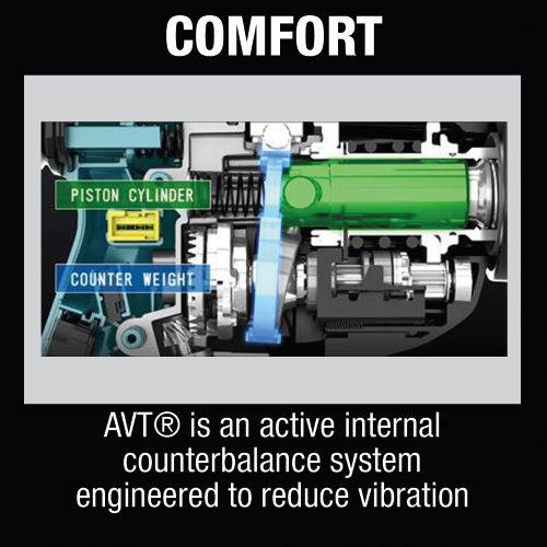 - Anti-Vibration Technology (AVT) is an active internal counterbalance system which is engineered to reduce vibration for increased Comfort