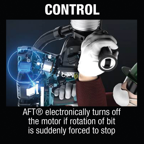- Control: AFT electronically turns off the motor if rotation of bit is suddenly forced to stop