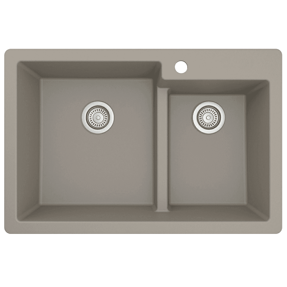 QT-811 Quartz Top Mount Large/Small Bowl Kitchen Sink, 33" x 22" x 9", Concrete