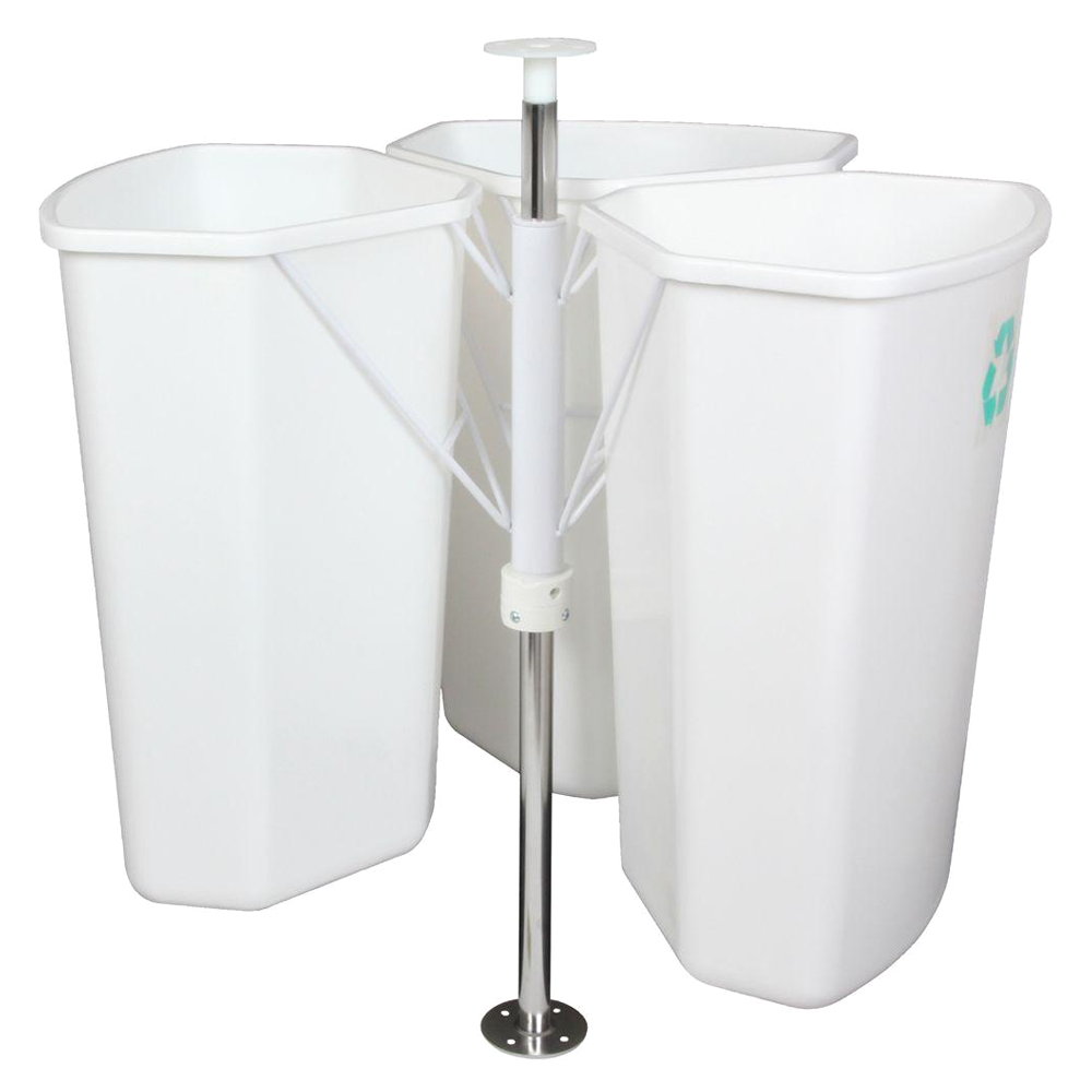 - Includes three 32 quart bins, assembly and post, mounting hardware and instructions